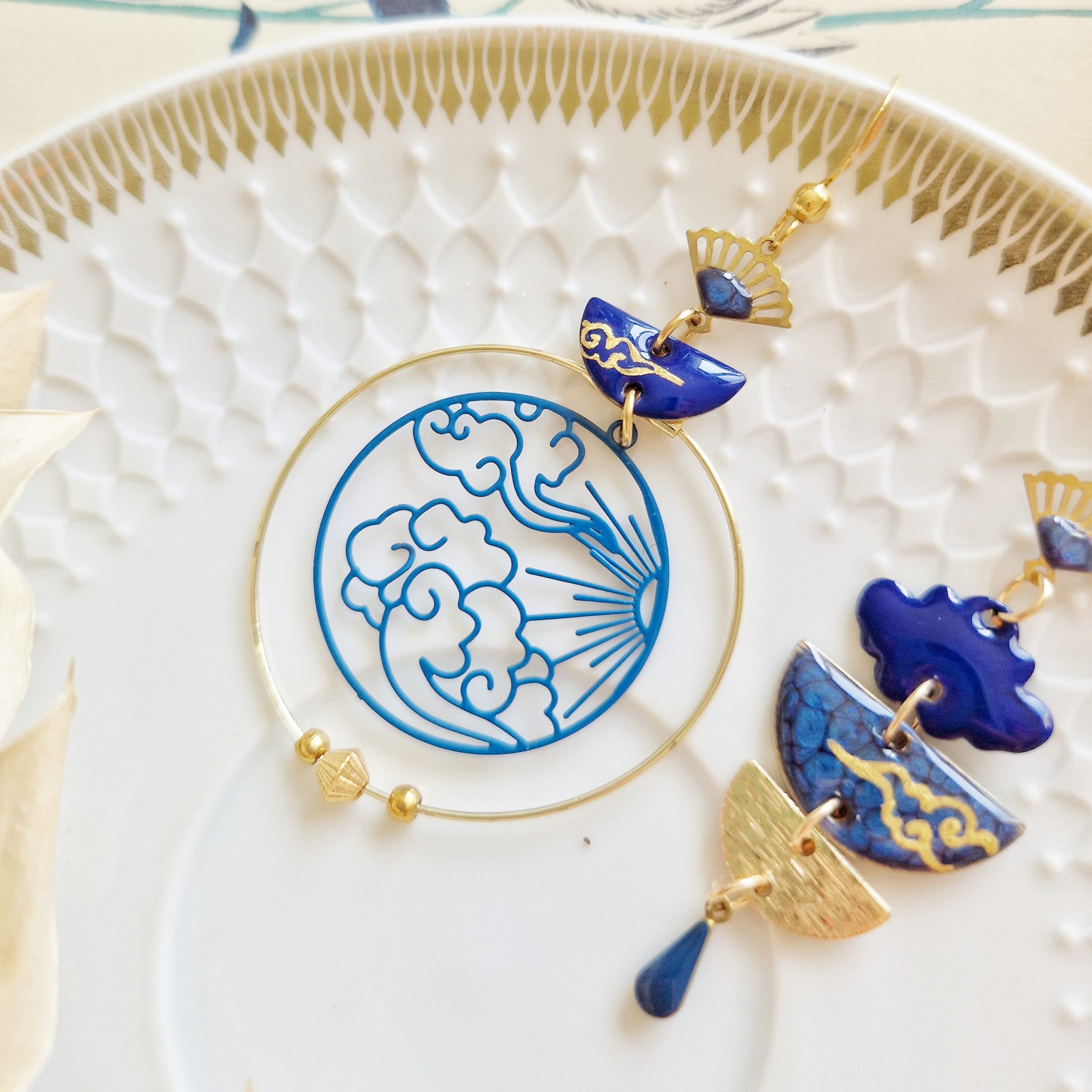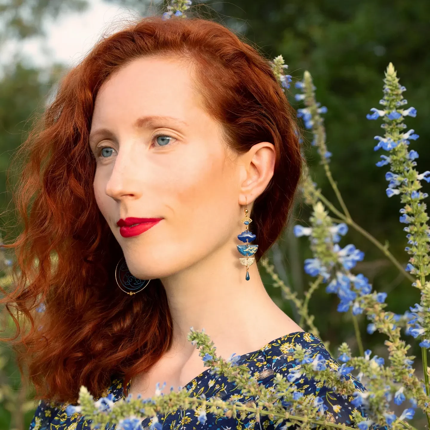 Crochets d’oreilles en laiton doré à l’or fin (sans plomb, sans nickel, sans cadmium, fabrication européenne). Me prévenir de toute sensibilité allergique.