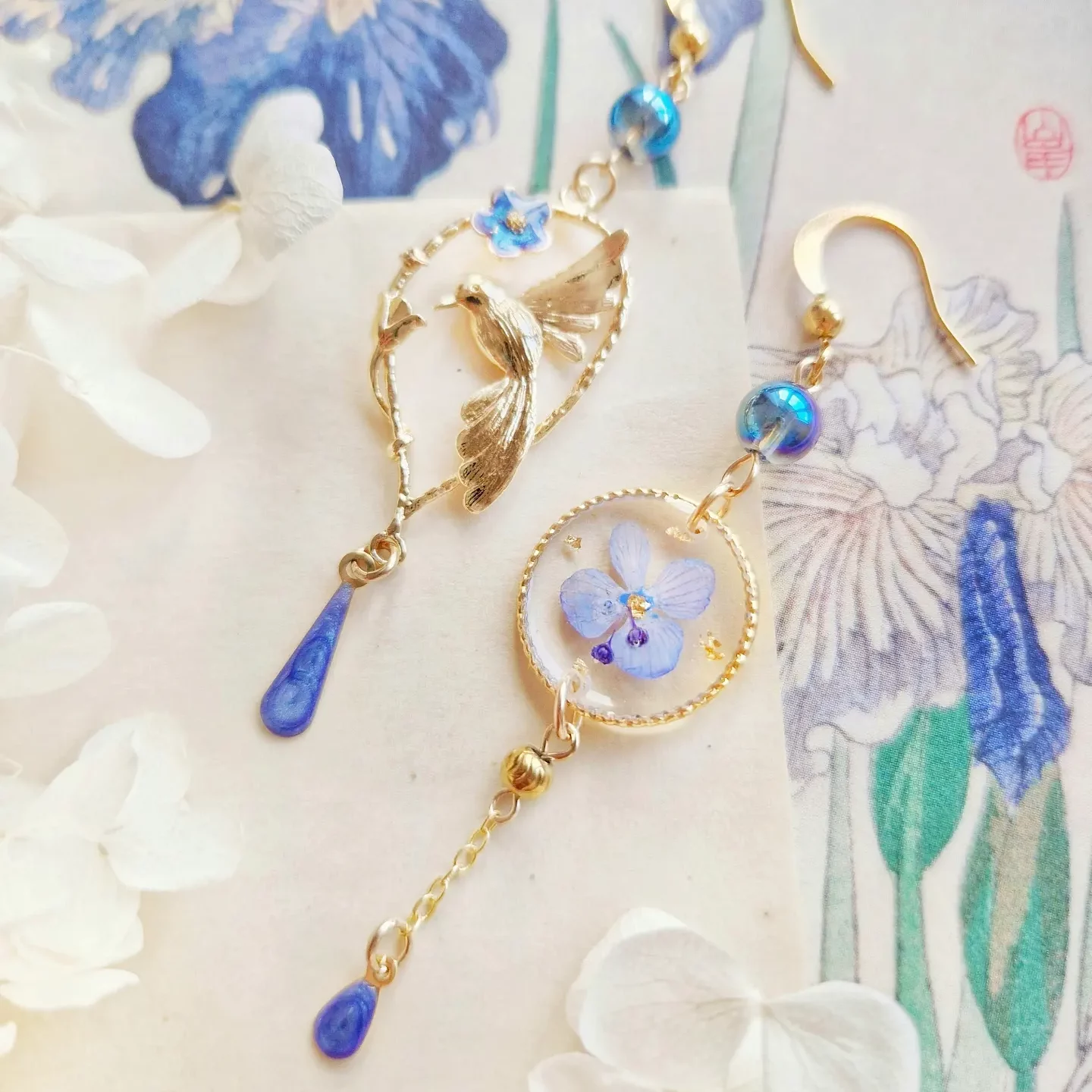 Crochets d’oreilles en laiton doré à l’or fin (sans plomb, sans nickel, sans cadmium, fabrication européenne). Me prévenir de toute sensibilité allergique.