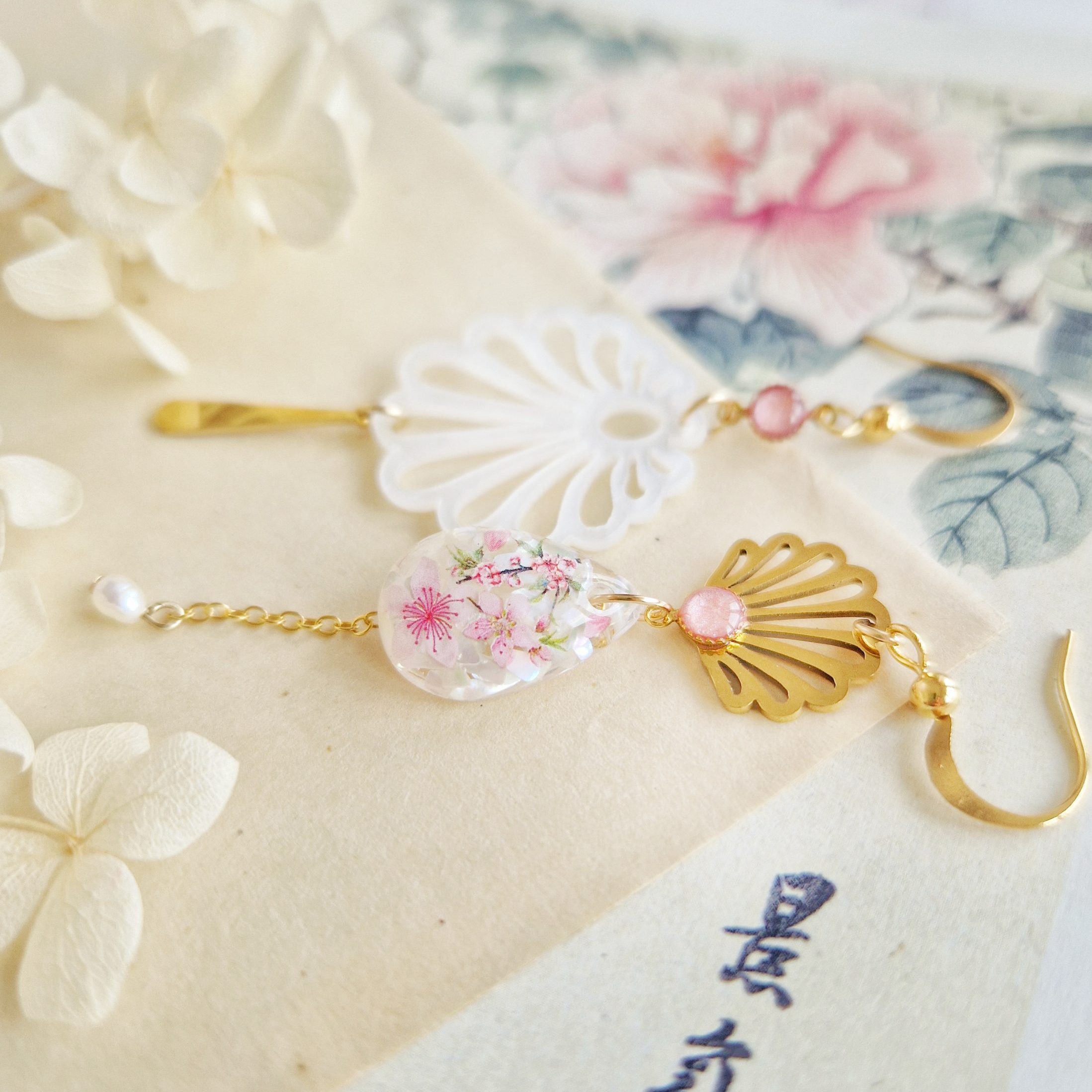 Cette petite collection s’inspire des couleurs et des motifs de célèbres paysages naturels japonais, réhaussés de petits morceaux de nacre aux sublimes reflets :